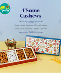 This irresistible collection brings together four exciting flavors—Chilly Cashew, Salted Cashew, Pepper Cashew, and Masala Cashew—offering a delightful mix of bold, savory, and spicy notes. Whether you're craving a kick of spice or a classic salted crunch, each variety is crafted to perfection using premium cashews.