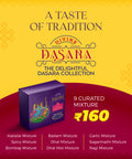 Savor the spirit of celebration with the "Divine Dasara – 9 Curated Mixtures," a collection that brings together tradition and innovation in every bite. Ideal for sharing with family or serving to guests, this box is a must-have for your festive celebrations.
